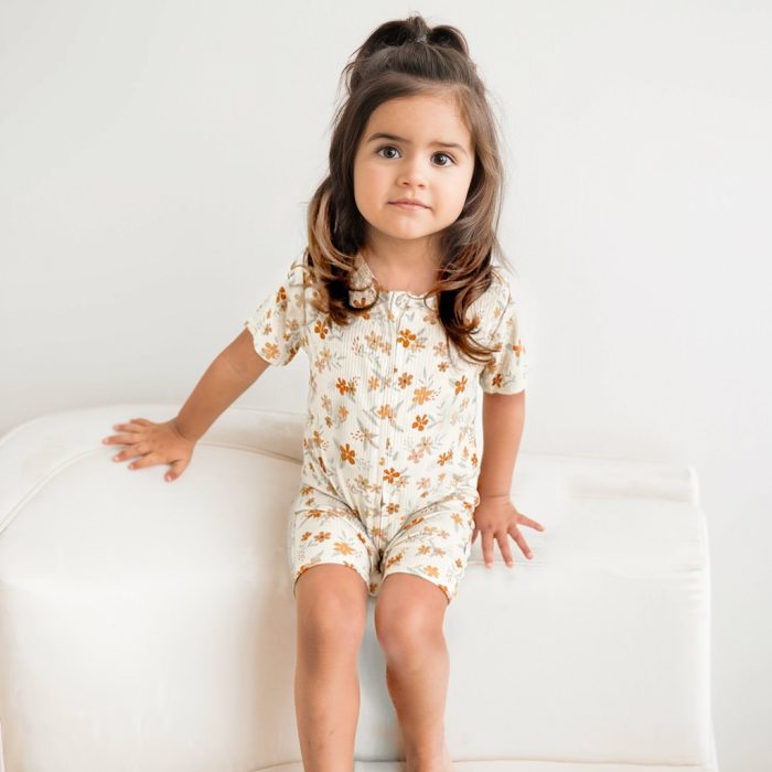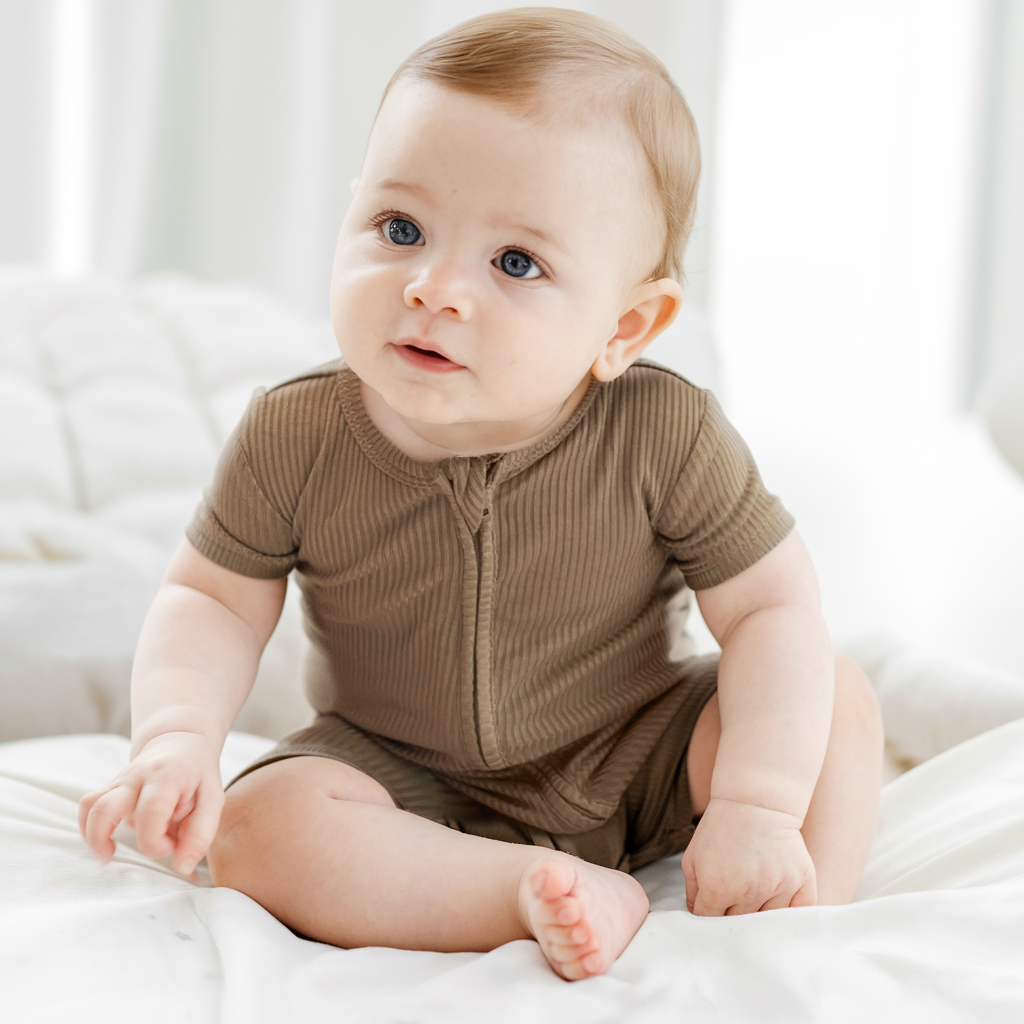 China Factory Custom Ribbed Bamboo Baby Zipper Short Onesie Romper